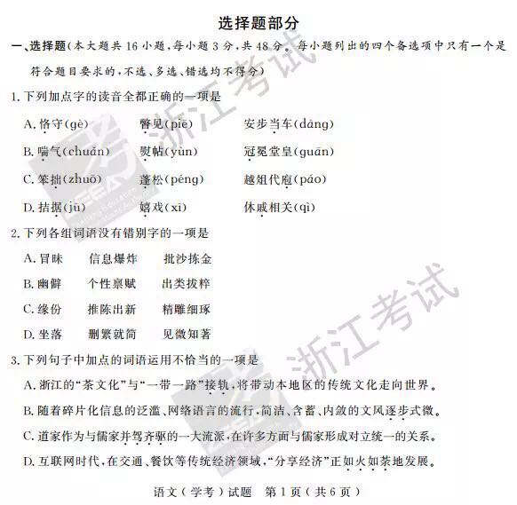 浙江省2017年4月高中學(xué)業(yè)水平考試語(yǔ)文試題及答案