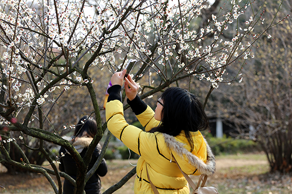 梅園一隅,此刻卻是那般的熱鬧、繁華;êH缬B語陣陣。梅花俏枝頭,桃花笑春風(fēng),海棠綽風(fēng)姿,點綴了這一方晴空;ㄩg的林蔭小道,樹下的青階石凳,耳畔的三聲鳥語,不時地引來“拍客”們的駐足。微風(fēng)過后,片片花瓣擁入了大地的懷抱,在空中跳起了妙曼的舞姿,美如仙子。不一會兒,又收起了剛才的那股子爛漫,羞羞答答地鋪滿一地。撿起一片花瓣,放在鼻間,香味濃郁,只感精神氣爽。在這春日里,捧一本好書靜坐在梅園石階下,輕嗅著花的芬芳,享受著春光爛漫該是多么美好。