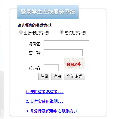 請選擇您的貸款類型:生源地助學(xué)貸款 高校助學(xué)貸款 身份證: