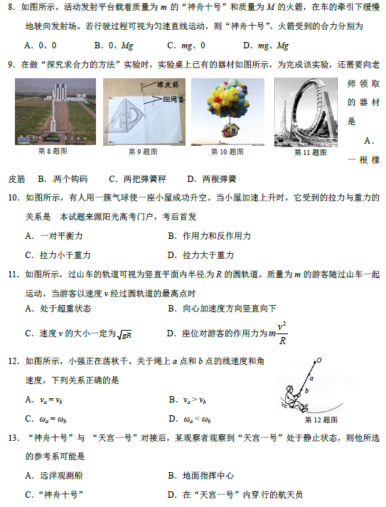 浙江省2015年1月高中學(xué)業(yè)水平考試物理試題及答案